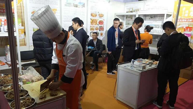 前來參觀的客戶正在試吃用”隆泰“香精系列制作的鹵制品,都贊不絕口!